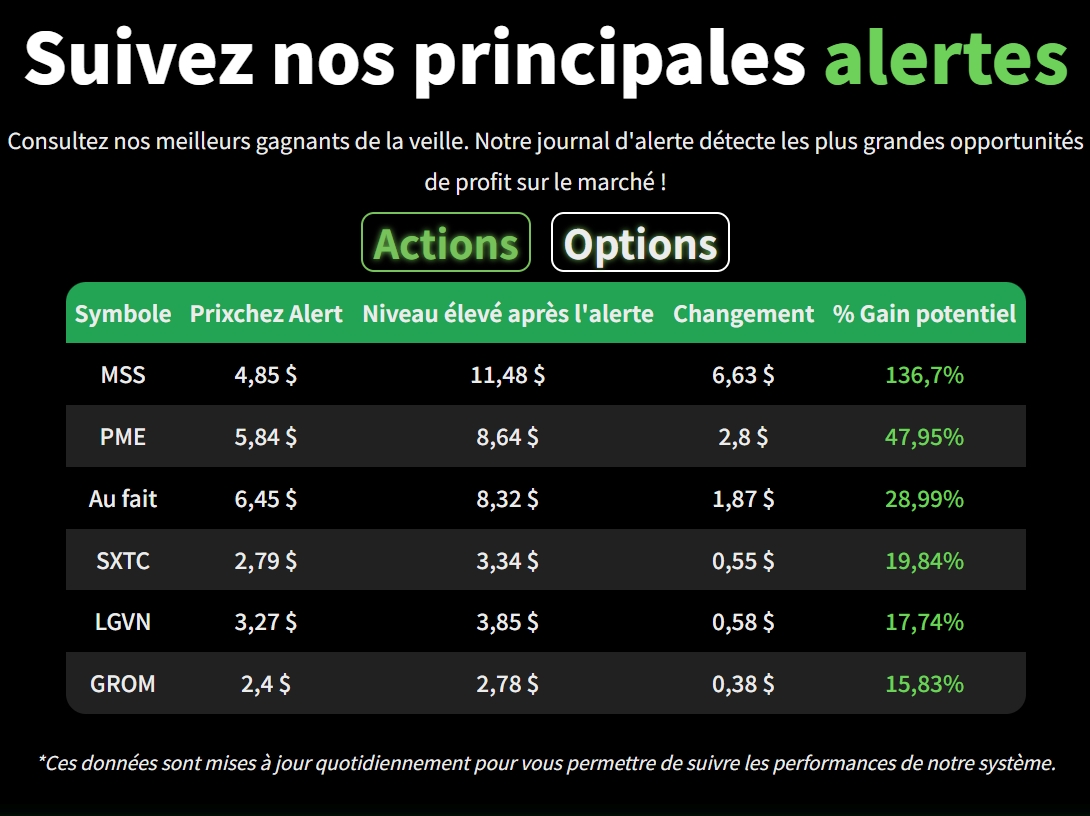 Ons volledig geautomatiseerde, op algoritmen gebaseerde systeem analyseert meer dan 11.000 aandelen meerdere keren per seconde om de meest volatiele aandelen te vinden en u te waarschuwen voor de grootste marktbewegingen voordat ze plaatsvinden.